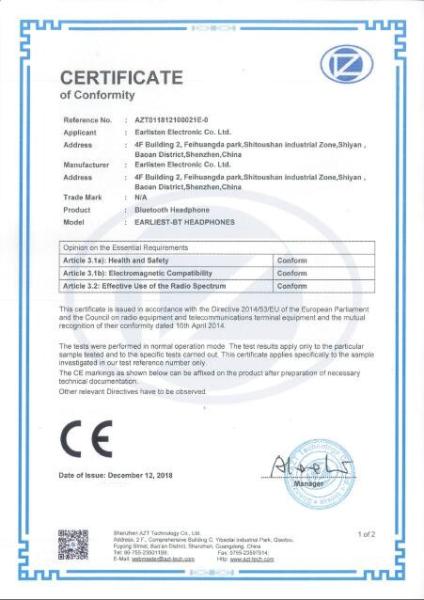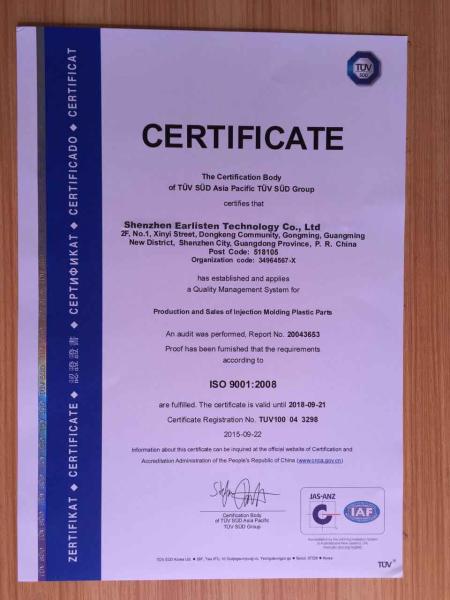 Earlisten Technology Co ., LTD always regard the goal of guarantee the product quality and meet client’s requirement as the most important mission. We continuously perfect our quality management system and we were approved for the ISO9001:2008 Quality Management System in the year of 2015 .